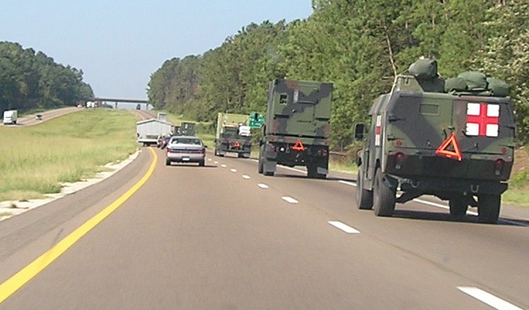 Nice drive heading west on I20, listening to folk and rock music on the radio. Lots of people in the parking lots of malls collecting goods and money for the hurricane relief. Nice. As I drive down on Interstate 59 I see army convoys being passed by 'rolling' houses (doing 80mph) ...there are hundreds of such houses being towed to the coastal area. Good to see such help is on its way.